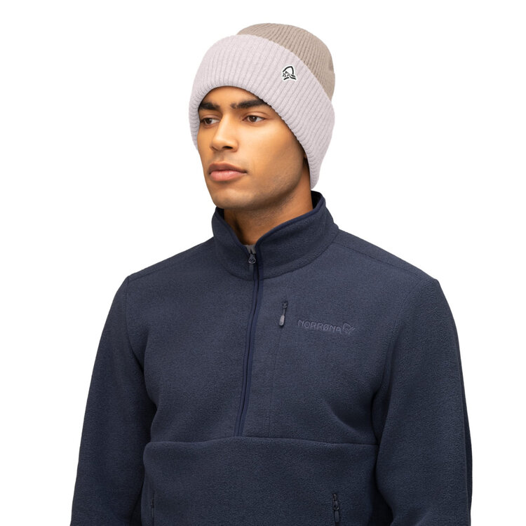 Norrøna uses RWS certified 100% 19,5 micron extra fine merino wool in a folded one layer lightweight knitted construction because merino wool is warm, soft on the skin and is anti-odor and temperature regulating.