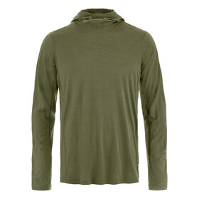 Lightweight hooded long-sleeved sweater in a functional merino wool and polyester blend. Produced without PFAS.