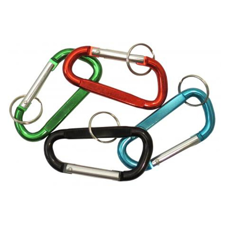 An accessory carabiner with split ring. Great for securing keys and small objects to packs and other gear.