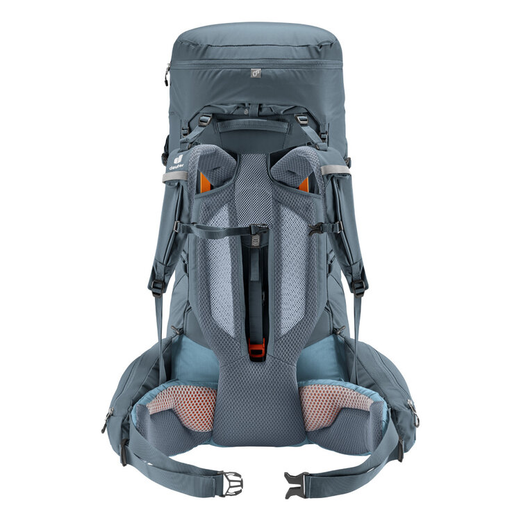 The superior carry comfort and load distribution of this pack is down to the Deuter Aircontact back system with Air Spacer mesh and a wide ventilation channel, plus comfortable shoulder straps, mobile hip fins and an ergonomic lumbar pad. A full-length, J-shaped zipper on the front makes it quick and easy to locate items lower down in the main compartment. While detachable 3-liter hip fin pockets provide extra storage and keep items within reach. A zip-out 1.5-liter bottle holster also lets you hydrate on the move.