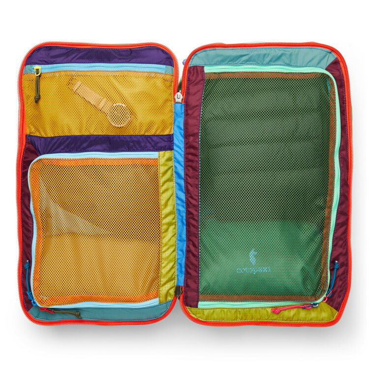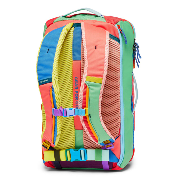 Identical to their standard Allpa 28L Travel Pack in features and function, this Del Día version uses high-quality deadstock fabric that might have otherwise ended up in the landfill, making each pack one-of-a-kind.