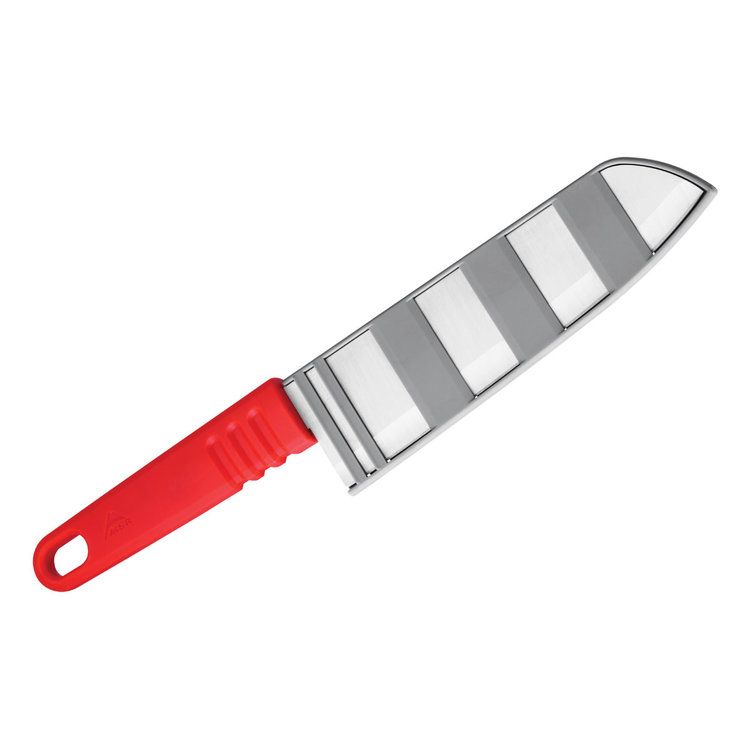The Alpine™ Chef’s Knife features a 6.5-inch modified Santoku design that excels at bigger chopping and slicing tasks, with a high-grade stainless steel blade for lasting durability. Includes an easy-cleaning and ventilated protective sheath.