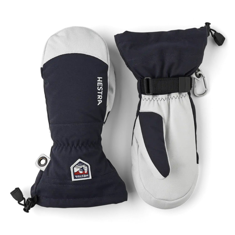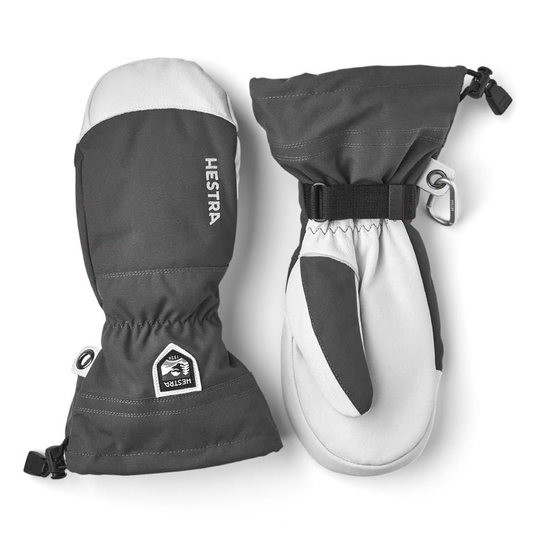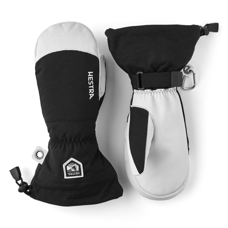 Hestra's Army Leather Heli Ski was originally created for ski guides in western Canada who needed a reliable and warm ski glove for long days of snow and cold. Made with durable goat leather that provides exceptional grip and feel, and with a waterproof three-layer polyamide fabric backhand. This model is for those looking for a warmer mitt, and just like a glove offers a range of smart functions that makes it easier when you can't go inside to warm up often. The liner, for example, is easy to take out and exchange if it gets moist or to adapt to varying activity levels and temperatures. And the long collar has a snowlock that, together with a Velcro strap on the wrist, ensures warmth stays inside the glove. A wrist strap reduces the chance of dropping the glove if you take it off to answer the phone or adjust your equipment. There is also an eyelet that lets you fasten the glove with a carabiner to your ski pants or climbing harness – practical when working with just a pair of thin liners on your hands. A durable, flexible companion for skiers that spend a lot of time outdoors and who often find themselves far from the ski resort and its comforts.