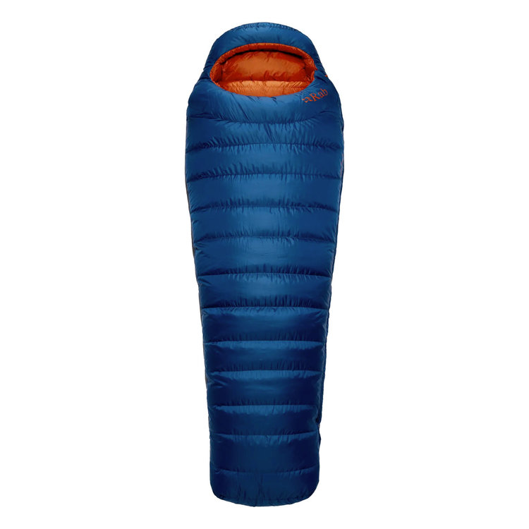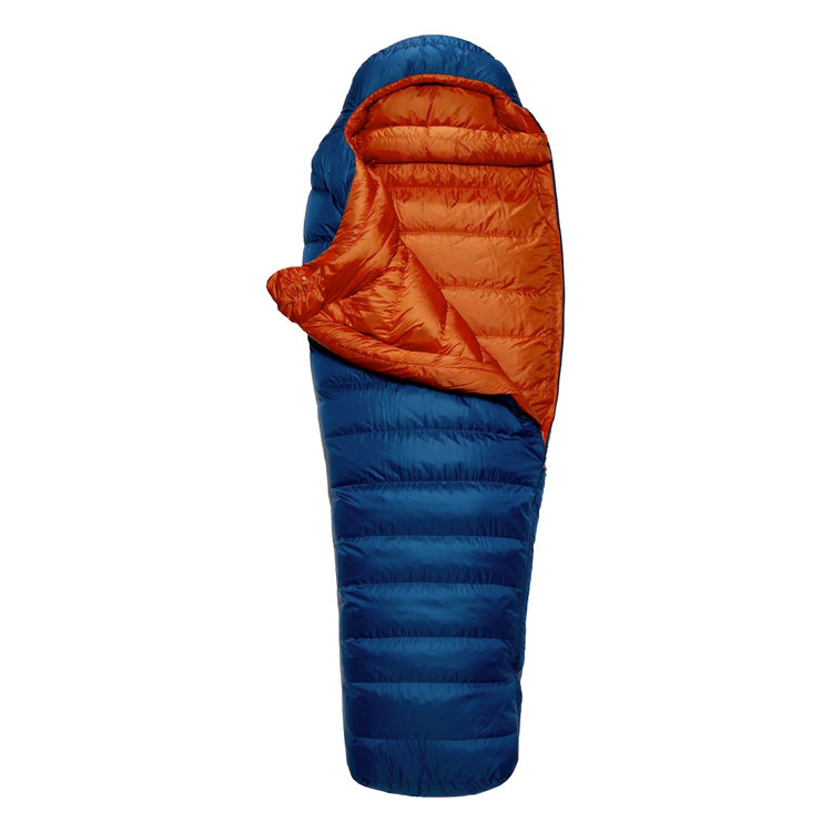 The Ascent is built with a lightweight and durable, recycled Pertex® Quantum outer fabric and recycled nylon lining. It has trapezoid shaped, boxwall baffles that stack neatly together, encouraging the hydrophobic duck down inside to loft fully and reducing the appearance of cold spots. Hand-filled in the UK, all Rab's down bags benefit from never having had their down compressed before use, maintaining the down’s loft and warmth.