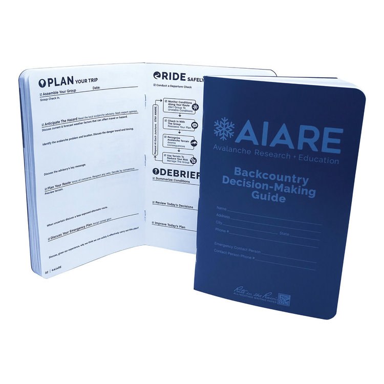 The Backcountry Decision-Making Guide is an essential snow study tool for the aspiring avalanche professional or serious student. Developed by the American Institute for Avalanche Research and Education (AIARE) to meet the American Avalanche Association (AAA) standards. Used with a pencil, the pages are waterproof so you can collect data even on the wettest days.