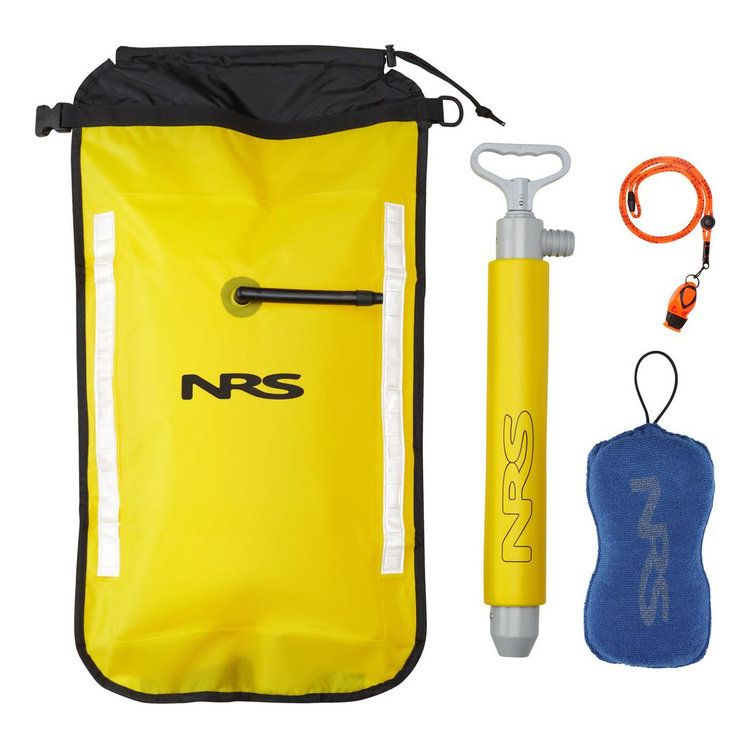 Your car comes with lots of safety features, your touring boat doesn't. The NRS Basic Touring Safety Kit gives you four items that you shouldn't boat without - a whistle, paddle float, bilge pump, and boat sponge.
