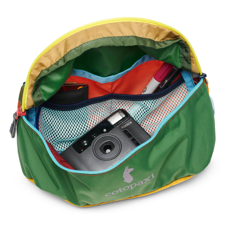 Del Día bags are made in the Philippines using fabric left over from other companies’ production runs. This helps keep good material out of the landfill, and puts it into the hands of thoughtful adventurers like you. Due to this, each bag is uniquely coloured and may not look similar to the one photographed.