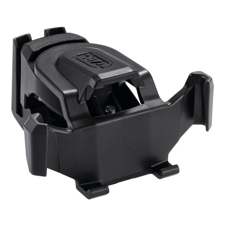 Plate for mounting a Petzl headlamp on bicycle handlebars or seat post.