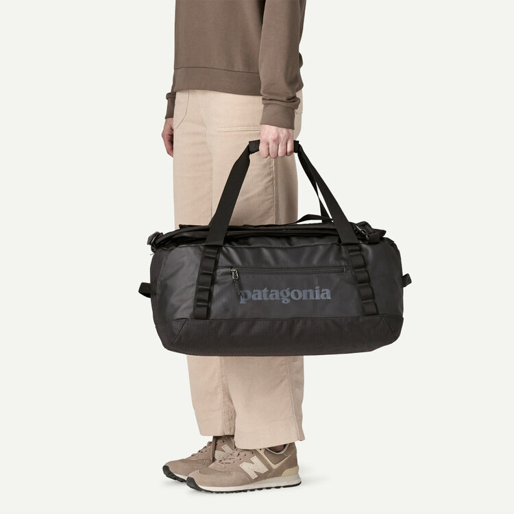 Patagonia's Black Hole® Duffel 40L is perfect for small loads and long weekends. It delivers the same legendary performance you expect from their Black Hole® bags, but with a huge step toward environmental impact reduction with 100% recycled body fabric, lining and webbing, and now a pioneering recycled TPU-film laminate with a sleek matte finish. This duffel size meets most airline and train carry-on requirements. Made in a Fair Trade Certified™ factory.