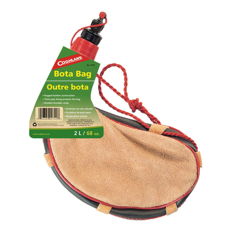 Fashioned after traditional Spanish wine skins, Coghlan's is made with a rugged leather exterior and features a heavy poly lining with a braided shoulder strap for comfort and convenience. Capacity: 0.53 U.S. gal. (2 L)