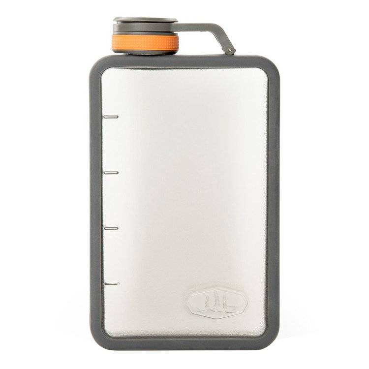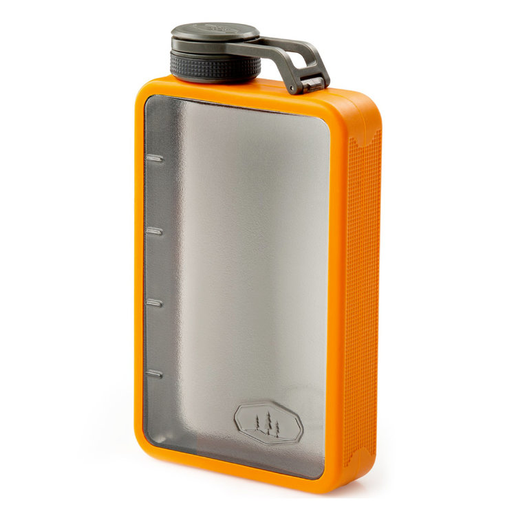 Shatter-resistant, copolyester resin body and grippy, silicone bumper mean this flask can go anywhere