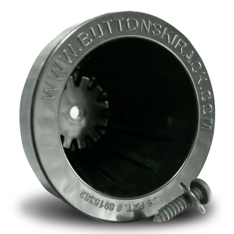 Options: Button Hangers have traditionally been made from wood and sold together as with a wall mount backboard. The new injection molded Button Ski Hangers come as individual pieces that will allow you to build your own Button Ski Rack® out of a board from the hardware store, an old ski, a 4×4 post, a railing on your deck, etc.