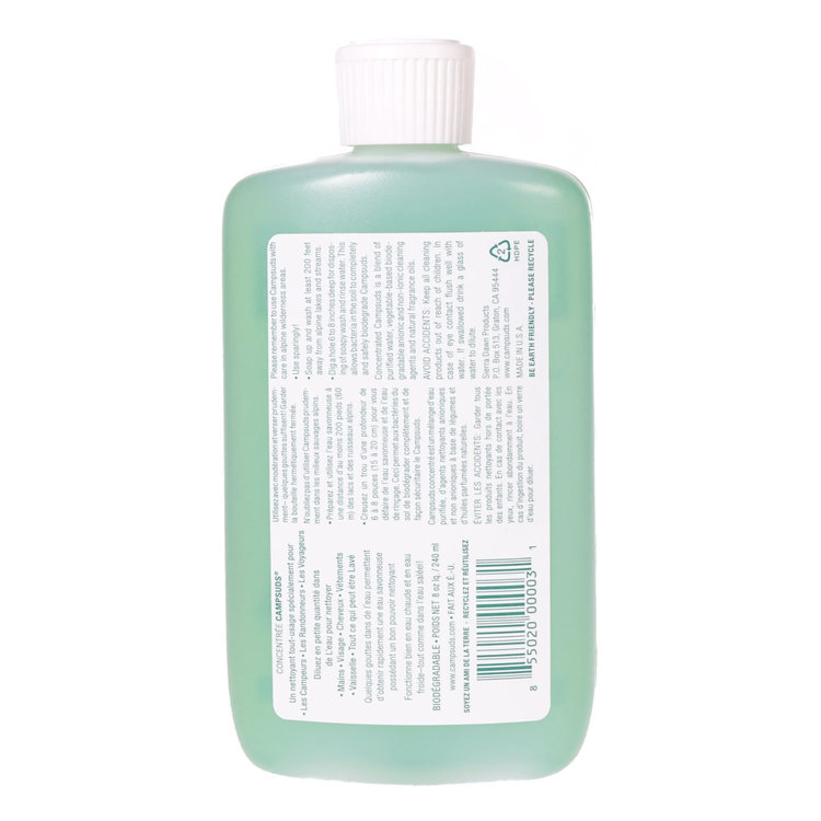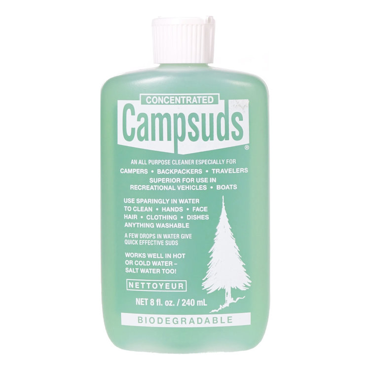 Campsuds is well known and trusted as the finest outdoor cleaning product available. The super concentrated formula requires only a few drops for most outdoor cleaning jobs, but the pH-balanced formula is gentle enough to be used as a bath soap or shampoo.