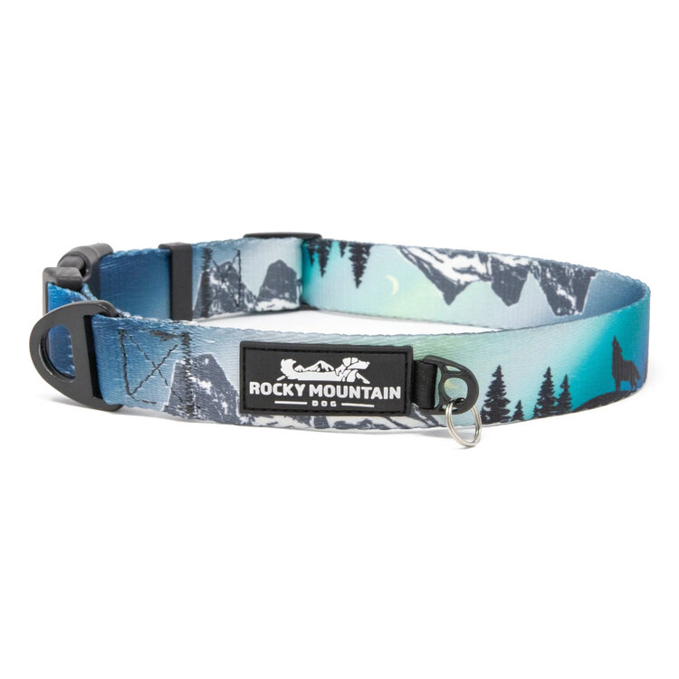 The word is out, the Canmore Alpine Dog Collar is your everyday collar inspired by the Rocky Mountains. These collars are durable and versatile with an aluminum D-ring, comfortable webbing, easy to use buckle and a separate ID tag attachment that doesn't rattle.