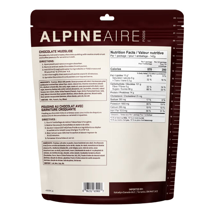 - Packaging shows allergens and nutritional information, and has a graduated scale on one side, so you can gauge how much water to add to your meal