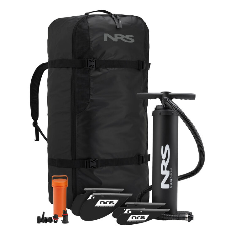 - Includes a high-pressure Super Pump II (with pressure gauge) two All-Water Fins, two Whitewater Fins, travel backpack and repair kit.