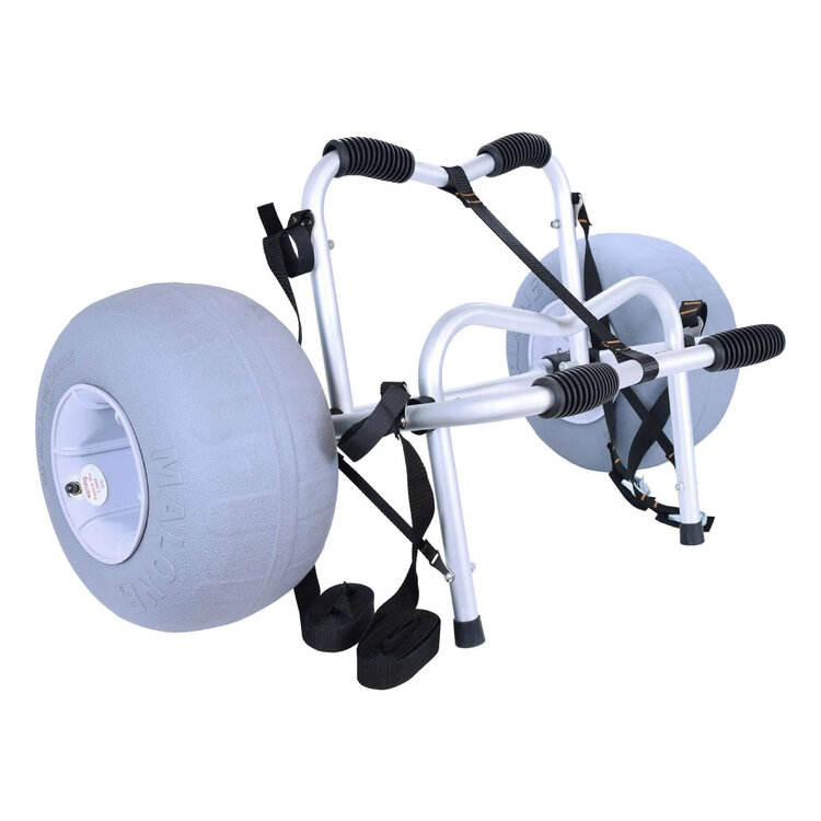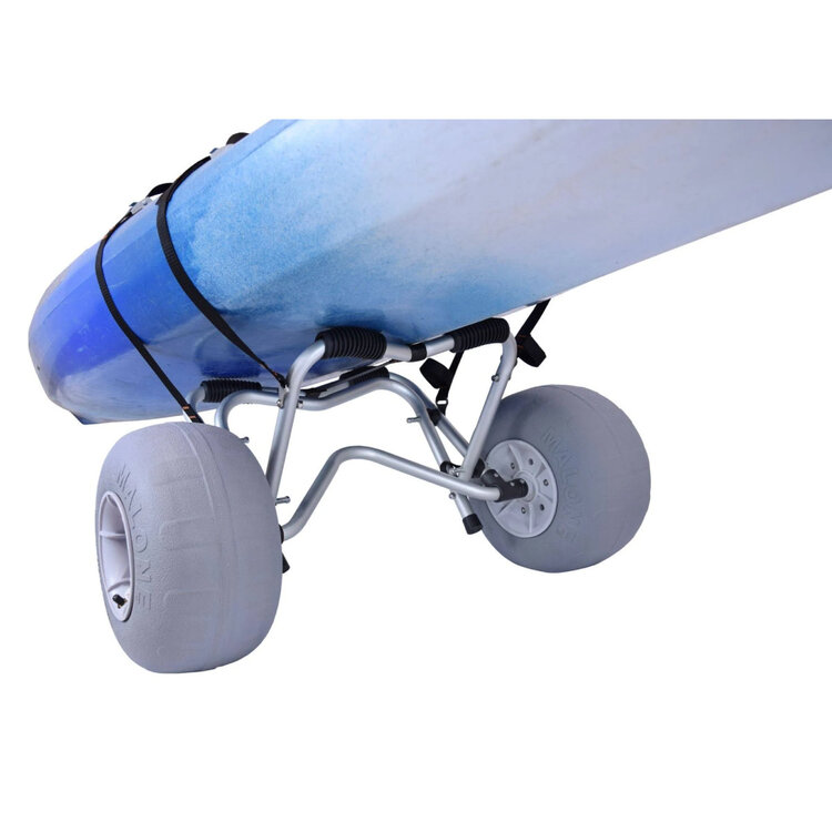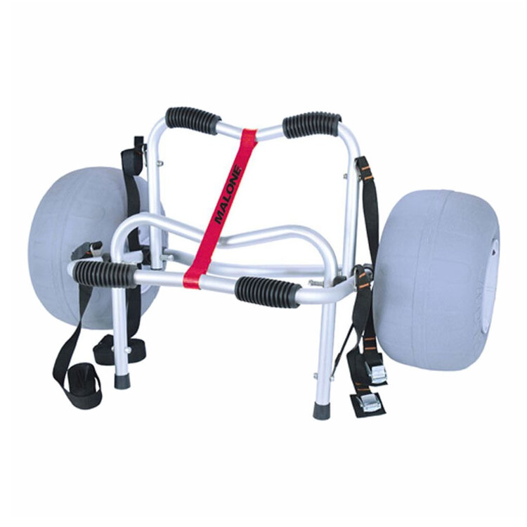 Each cart is also outfitted with dual on-board cam style load straps. The "S" version features the12" x 7" low pressure beach wheels for maximum stability in soft sand. With the integrated push button wheel release system, the need for wheel retainer clips is eliminated. Product workmanship and material performance is guaranteed with Malone's Lifetime Limited Warranty.