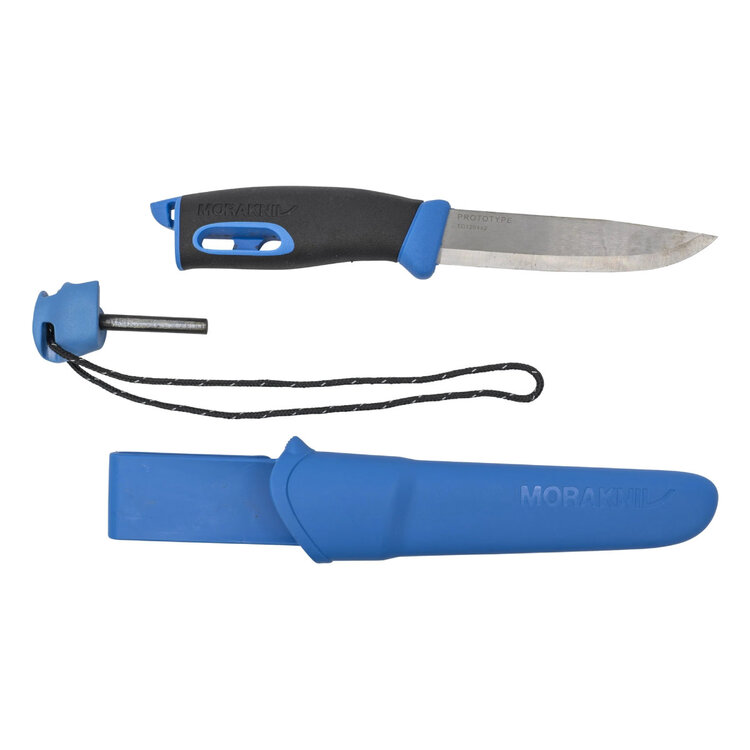 This is a nicely enhanced version of Mora's mainstay Companion knife. It features a rubberized coating on the handle, and a fire steel which detaches from the pommel, so you can always start a fire without bringing a separate fire starter. The back of the blade is sharply squared off for using the fire steel, which is made from the same material used in Mora's bushcraft survival knife, and which produces a nice heavy shower of sparks. The knife firmly click-locks into the sheath, and the sheath features both a sturdy belt clip as well as a hole on the end for drainage. This is a great, compact and completely useful package that you should never enter the woods without.