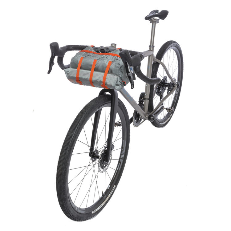 - Multiple bike-frame attachment configurations for burley compression stuff-sack with daisy-chain webbing system