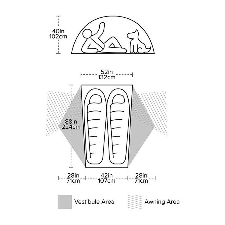 - Stash oversized gear in 3D shelf, utilizing dead space above your feet or securely store helmet on top of tent body with elastic webbing and use daisy-chain webbing loops on the fly exterior to dry wet clothes and gear