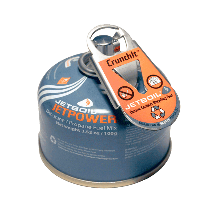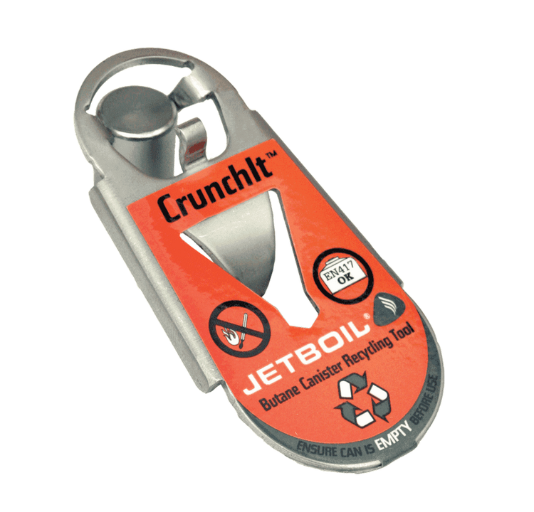 Enjoy butane canister convenience without creating landfill waste, thanks to Jetboils CrunchIt™ Butane Canister Recycling Tool. Safe, fool-proof, and compliant with recycling standards, CrunchIt™ punctures Jetboil Jetpower (and certain other) butane fuel canisters, rendering them recycling bin ready*. Do it right - CrunchIt™