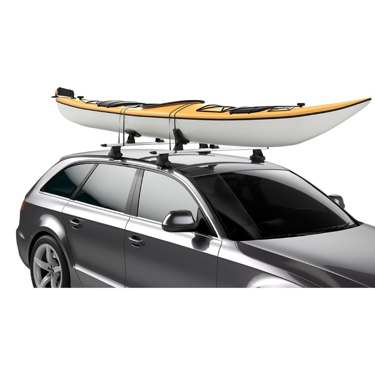 The Thule 896 DockGlide is a roof mounted kayak carrier designed to carry your kayak on the flat. The Dock Glide is commonly loaded and unloaded from the rear of your vehicle, which is why it includes felt-lined saddles making it easier to slide your kayak on and off your vehicle.