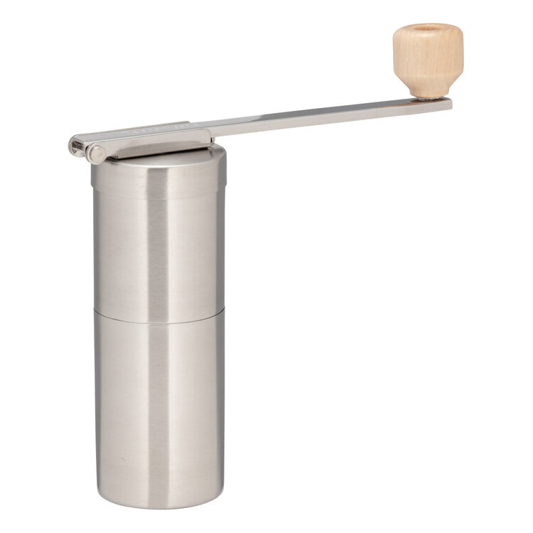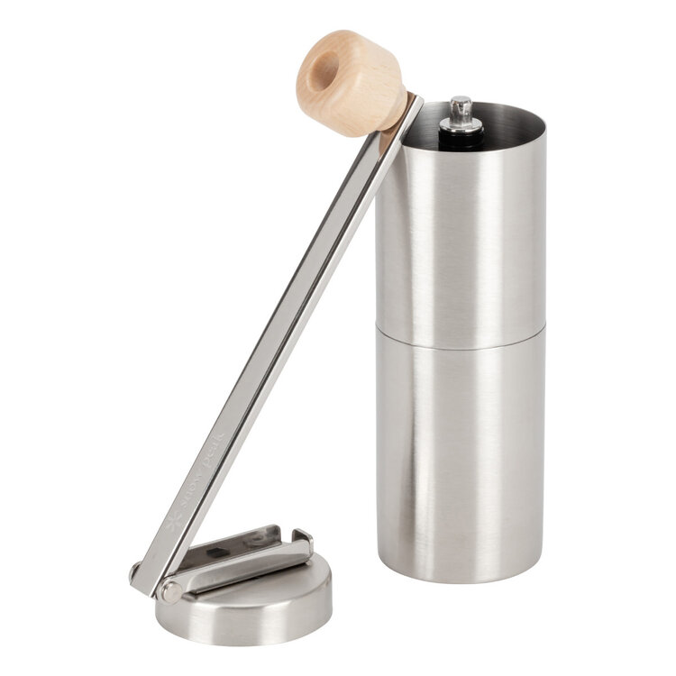 Modeled after professional barista equipment and made of stainless steel, the Field Barista Coffee Grinder features an adjustable ceramic burr and produces a variety of coffee grounds. Take it camping or use at home for fresh coffee. Place coffee beans in the top container and turn the handle to grind. After use, the Field Barista Coffee Grinder can be folded into a carry case for compact storage.
