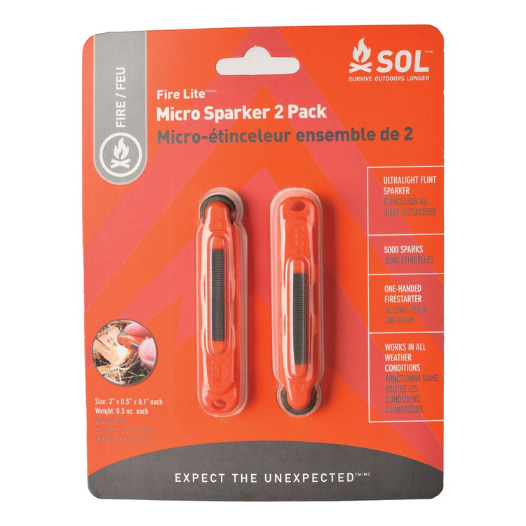 The Fire Lite Micro Sparker is a one-handed striker that you can rely on in all weather conditions. It's a perfect addition for your DIY survival kits so you can reliably start fire in a pinch. Comes as a two pack.
