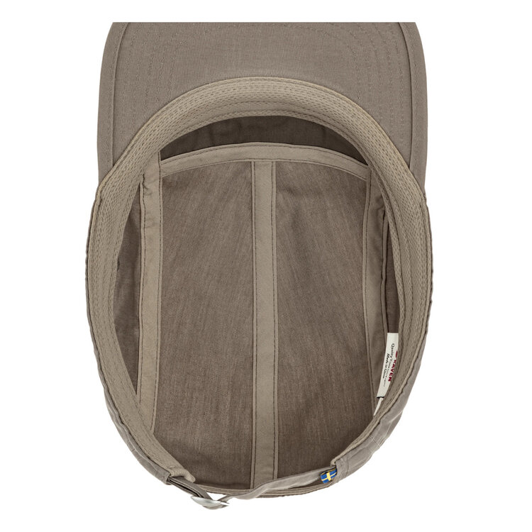 Flat-brimmed cap in classic G-1000 with Fjällräven’s iconic fox logo embroidered on the front. This durable five-panel cap has a metal clasp adjustment at the back to ensure the perfect fit and ventilation eyelets to release heat when the temperature rises.