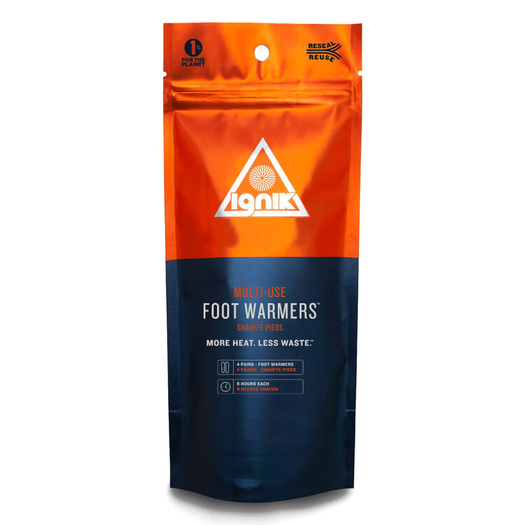 Ignik Foot Warmers are Arctic Grade, designed to solve the biggest problems you face with cheaper air-activated warmers; providing reliable, consistent, and long-lasting heat when you need it and with less waste. They start with the highest quality, naturally active ingredients. The contents are safe, all-natural, and biodegradable. Their AirBarrier™ pouch keeps more air out for more reliable heat - up to 8 hours each, more heat than the leading brands. The resealable top gives you control to use the warmers when you need them. Store unused open warmers for up to 72 hours later. The outer pouch is re-usable and 100% recyclable. The end result is a higher performance foot-warmer, which is more efficient and less wasteful.