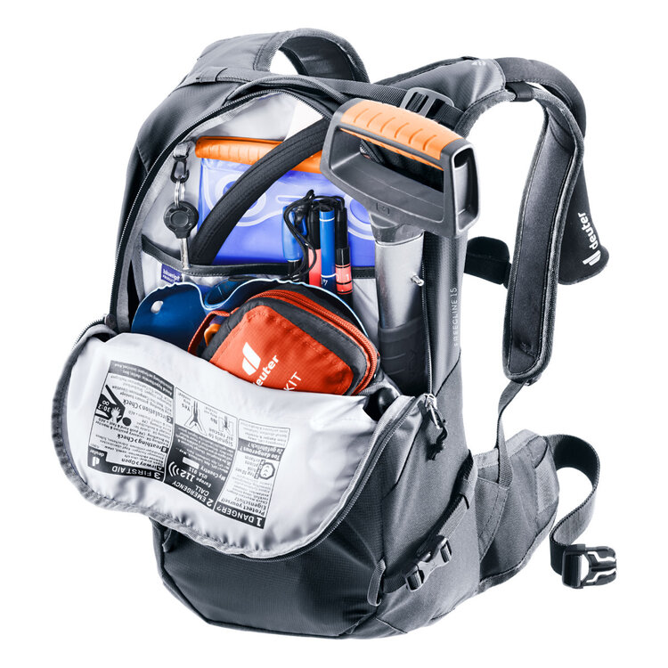 This all-mountain backpack is equipped with the deuter Alpine back system for a comfortable, snug fit that keeps the weight close to your center of gravity for full load control. An ice axe/pole strap doubles as a ski strap for diagonal attachment across the front of the pack. Side compression straps can be used to strap a snowboard to the front. And quick access to the main compartment and avalanche equipment compartment makes the Freecline a practical companion for exploring on- and off-piste.