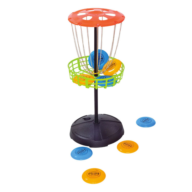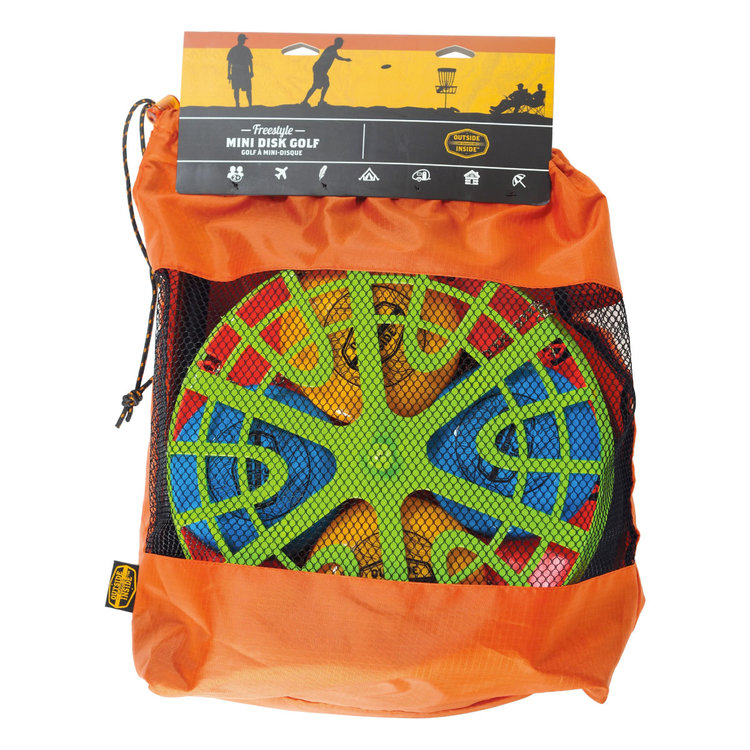 Play a fun game of mini disc golf with family or friends. This travel size game is a target shooting game or a par-3 round of golf. Can be played indoors or out! Quick set-up.