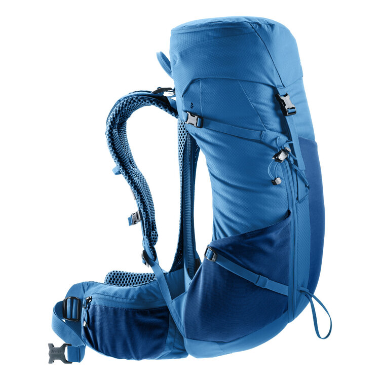 This lightweight hiking backpack benefits from the Aircomfort back system with ActiveFit shoulder straps and hip fins with Pull-Forward adjustment for optimum load transfer, even weight distribution and effective ventilation. With multiple pockets and compartments to stash everything you need for longer day hikes and multi-day hikes, with easy access via a wide front opening, plus pole attachments and gear loops.