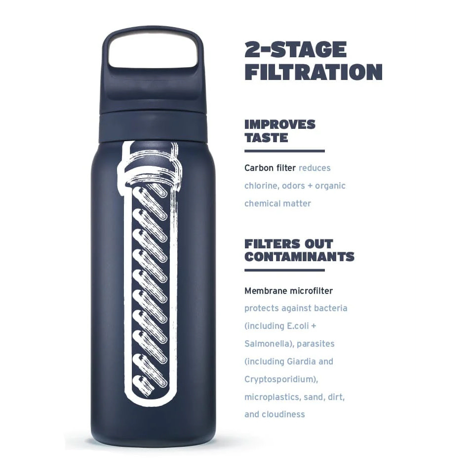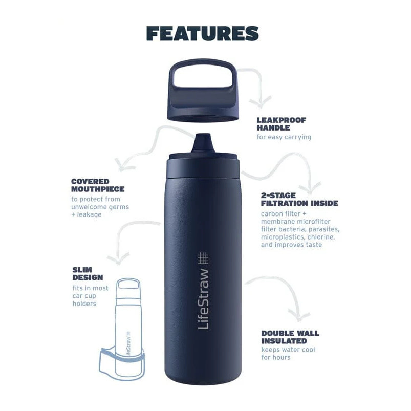 • LifeStraw Go Series is the ULTIMATE TRAVEL SIDEKICK. The 18oz stainless steel BPA-Free bottle filters out nasties so you can fill up from airport bathrooms, a tap in Mexico, or a gas station while road-tripping.