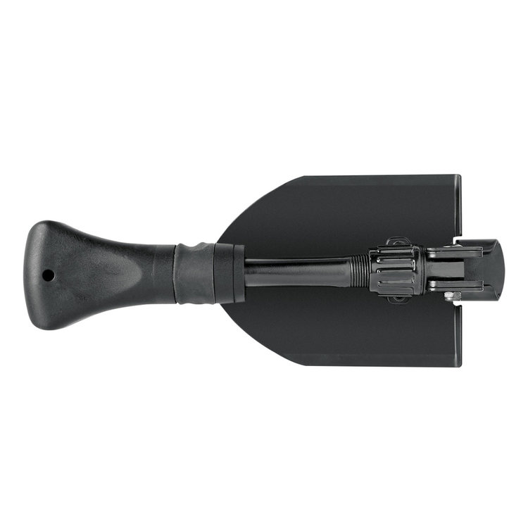 This lighweight, foldable shovel is ideal to bring along on back-country trips. A glass-filled nylon shaft and rubberized handle secure the grip for digging or hammering. Use as a spade or fold back to reveal a hammer for pounding, easily fold away with the push of a button.