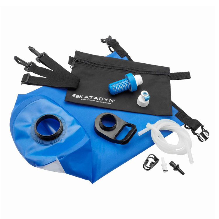 Filtered water can be stored in a separate container, bottle or hydration bladder (using included quick connect fittings). The opening of the container, bottle or bag for filtered water should be as small as possible to prevent dirt from getting in. If the filtered water is not to be used on the same day, use Katadyn Micropur tablets to preserve it.