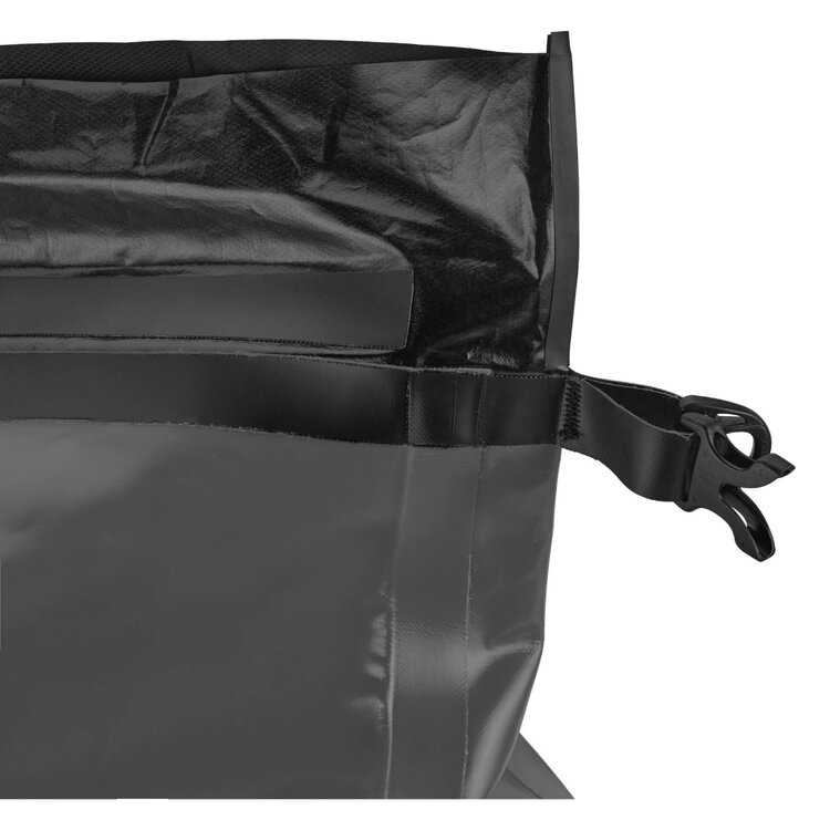 • Fold (rather than roll) from the top, at least three times, then secure impact-resistant buckles on the sides of the bag. Cinch the four compression straps to add extra pressure on the seal for the driest possible protection.
