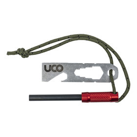 Sparks fly when the UCO Survival Fire Striker is used with its stainless steel striker. This fire starter has many uses and can ignite tinder or be used to light a campfire, gas stove or gas barbeque. The robust Ferrocerium rod is capable of 3,000 strikes