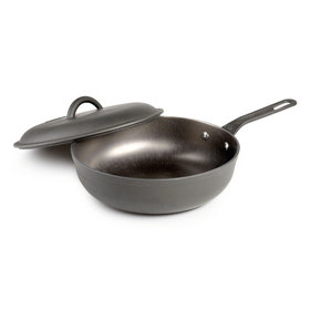 Gourmet, lightweight cast-iron frypan is 20% lighter than traditional cast-iron fry pans, while offering uncompromising cooking performance. Nitrided surface treatment helps to prevent corrosion. Polished interior and exterior bottoms perform on all cooki