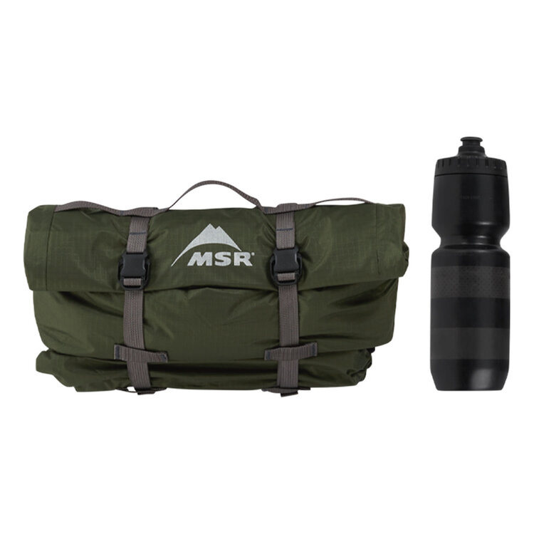 - Waterproof Handlebar Bag: Designed to attach seamlessly to flat or drop bars, the streamlined tent bag is seam-taped and waterproof.