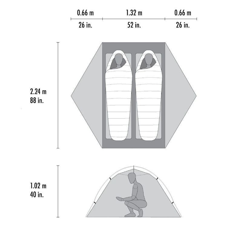 - Floor Fabric: Solution-dyed 20D ripstop nylon, 1800 mm polyether urethane & PFAS-free DWR