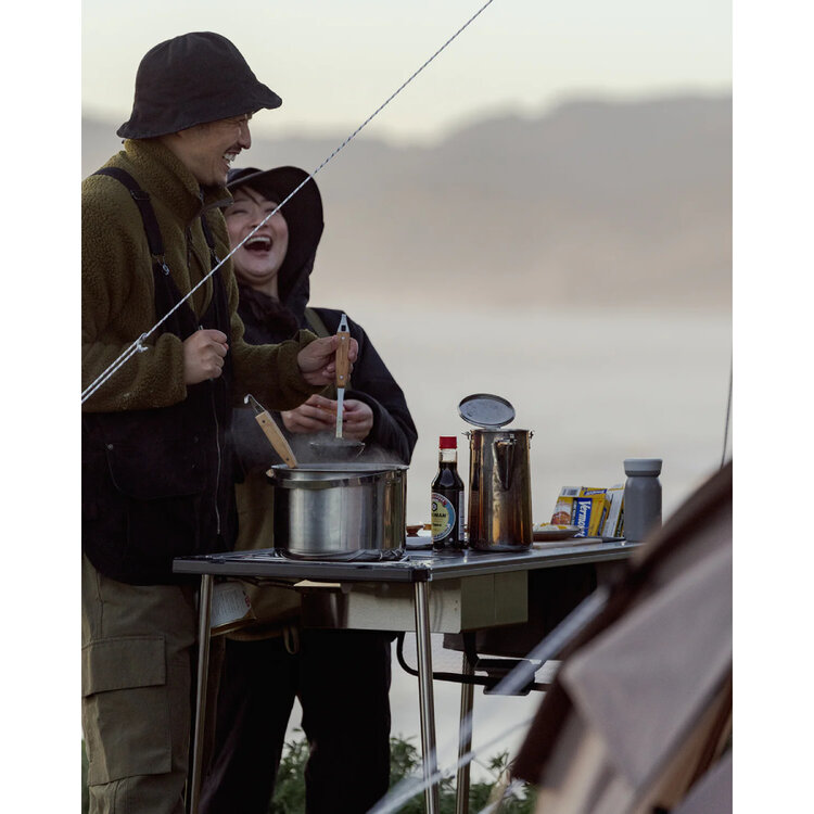 - Materials: IGT Four Unit Frame: Aluminum Alloy, Stainless Steel, IGT 830mm Leg Set: Steel, Resin, IGT Four Unit Carrying Case: Nylon, Stainless Steel Half Unit Box: Stainless Steel, Waterproof Unit Gear Bag 220: EVA, PVC Mesh, Nylon Tape, Cutting Board Set Large: Natural Wood, Rubber, High Carbon Vanadium Stainless Steel, Flat Burner: Stainless Steel, Brass, Aluminum, Steel, Resin