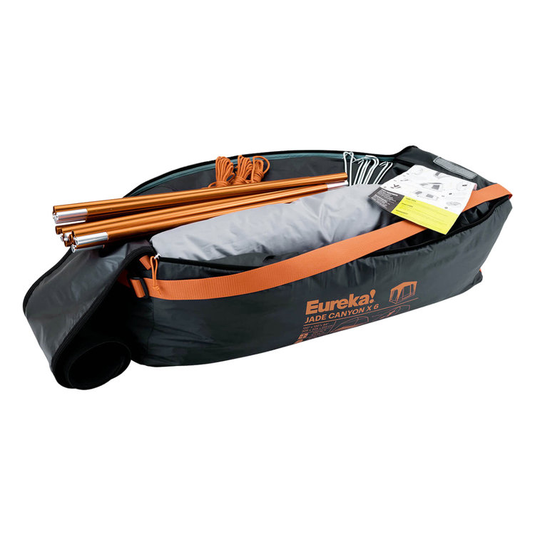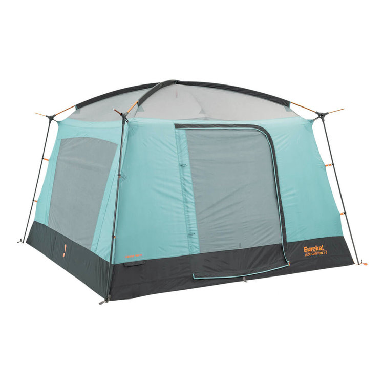 Spacious and kid-friendly, the Jade Canyon X is an ideal choice for your next family camping adventure. The tent's 7-foot interior peak height and near-vertical walls accommodate even the tallest camper. Outlast rain and wind storms with the sturdy steel/aluminum frame, which includes continuous pole sleeves, hubs, and clips for easy setup.