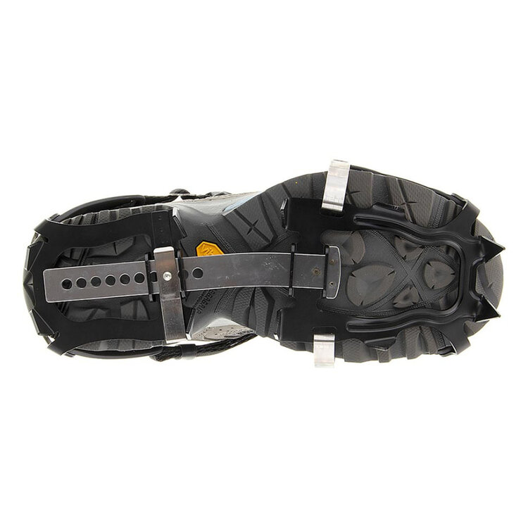 - 10 Independent ¾ Inch Long Chromoly Steel Spikes - Aggressive, strategically placed spikes provide a very stable platform for walking, while tearing deep into hard ice and snow.
