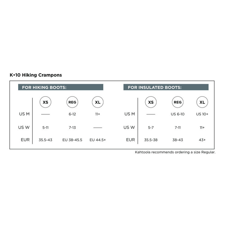 Take your hiking to the next level without the need for complicated bindings or straps. Thanks to Kahtoola's simple, yet secure, Quick-Fit Binding System, K10 is on and off in a flash with just the click of two buckles. So you don’t get bogged down when traveling over mixed, non-technical terrain. Paired with their patented LeafSpring® Flex Bar technology, K10’s binding system also allows the ankle and foot to move independently, ensuring maximum comfort and range of motion.