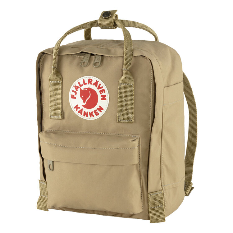 Kånken was created in 1978 to help prevent back problems among Swedish school children and, since then, has become one of Fjällräven's most appreciated products. The Mini-version is suitable for small children as well as for full grown adults who are looking for a small backpack. It is perfect for carrying a change of clothes for preschool or food on an outing, and as a smart everyday bag for books, water bottles, fruit and more. The shoulder straps are long and adjustable and fit both small and big backs. They can be fastened with a clasp so that they are not in the way when at their tightest. The material is hard-wearing, lightweight Vinylon F fabric that is able to withstand dirt and wetness. The main compartment has a large zipped opening, which makes it easy to pack and unpack. Two flat side pockets and a zipped pocket on the front. The included PE foam seat cushion is stored in the interior back pocket and also prevents the contents in the main compartment from poking against your back. Handles at the top and slender, adjustable shoulder straps. The logo on the front is reflective. It also has an address label inside the main compartment.