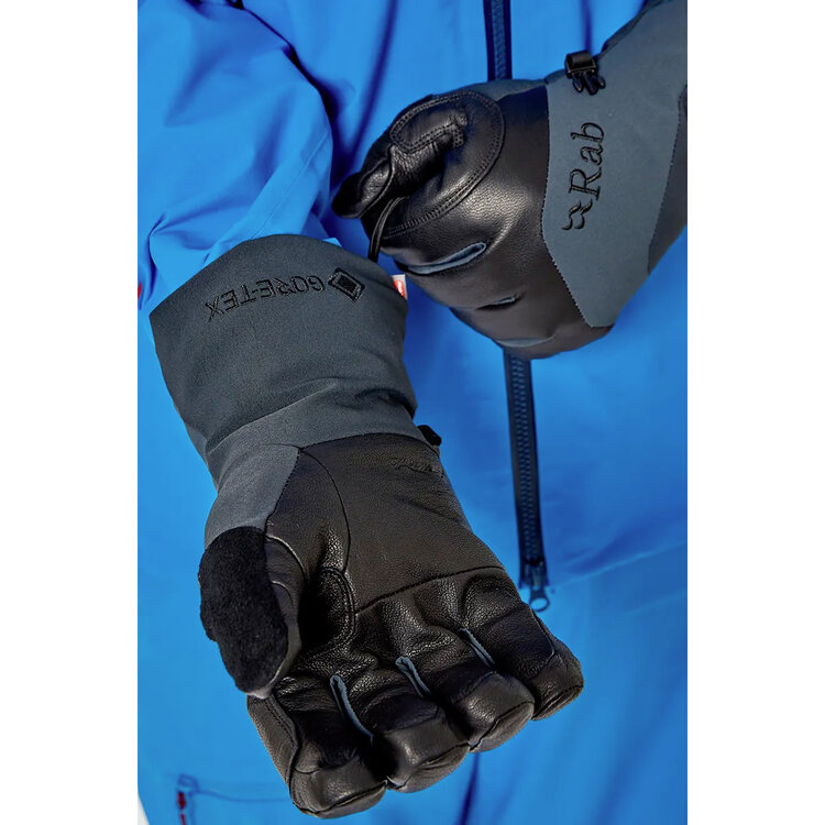 With its high-loft pile lining, protective gauntlet and adjustable cuff tensioners, Rab's Khroma Freeride GTX Glove delivers the ultimate combination of warmth, dryness, protection and flexibility for cold backcountry adventure.