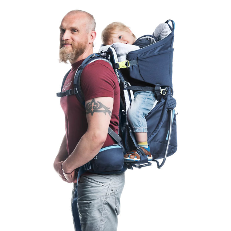 The ingenious, new Aircomfort Sensic Vario mesh backrest system makes mountain adventures all the more pleasant for families: The load is transferred perfectly, the child carrier fits snuggly while the back is fully ventilated. The child is afforded great comfort: The large, soft pillow gently braces the tired child‘s head even in the corners and supports a relaxing nap. The side access and the easy-to-access belt system of the child frame ensure safety – guaranteed by the TÜV GS safety seal of approval.