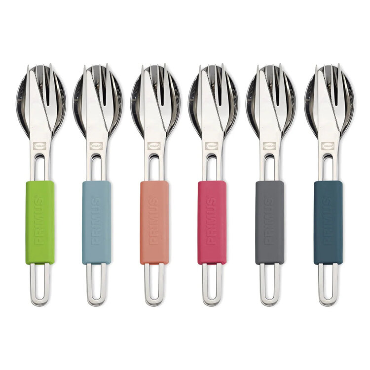 The set includes a knife, fork and spoon, all made with 18/8 stainless steel that cleans easily. Everything nests together to pack up compactly while a silicon wrap makes sure it all stays in place.