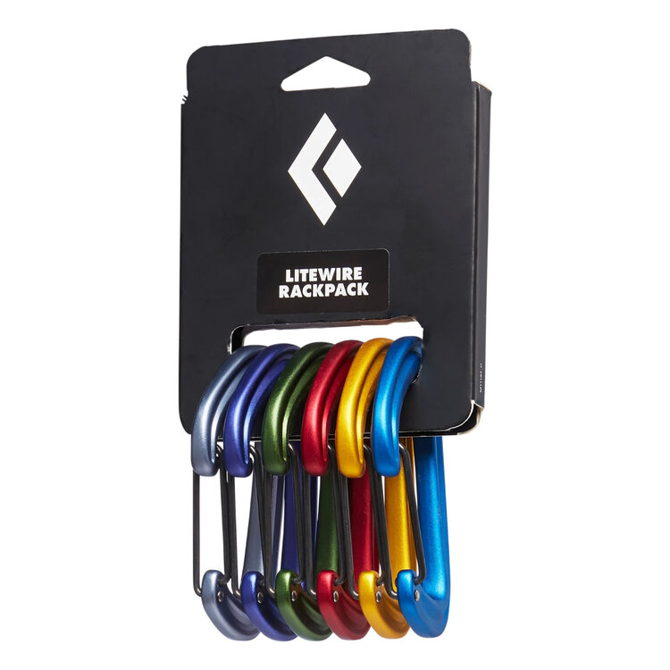 Get tradical with the LiteWire Rackpack, which comes with six LiteWire carabiners that are colour-coded to match Black Diamond's Camalots for easy identification when racking. Engineered as a wiregate trad climbing machine, the LiteWire is a small workhorse carabiner featuring a hot-forged construction-allowing us to remove weight where it's not needed and add material where durability is key-and a hinge-basket that holds the sling of a Camalot or sling perfectly. A large rope bearing surface adds durability not only for the carabiner, but for your rope as well, plus they've optimized the nose geometry to allow for efficient clipping, making the LiteWire an ultra-durable wiregate just waiting to be racked.